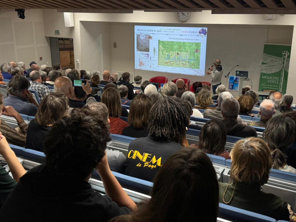 Vous étiez 160 pour cette première soirée de la COP d’ici 2025 qui s’est déroulée à l’Université de Nîmes ! Au programme, une explication de liens entre sol, eau, plantes et climat par Cédric Cabrol, co-fondateur de l’association L’autoroute de la pluie, suivie de la projection en avant-première du documentaire Cultiver la pluie.