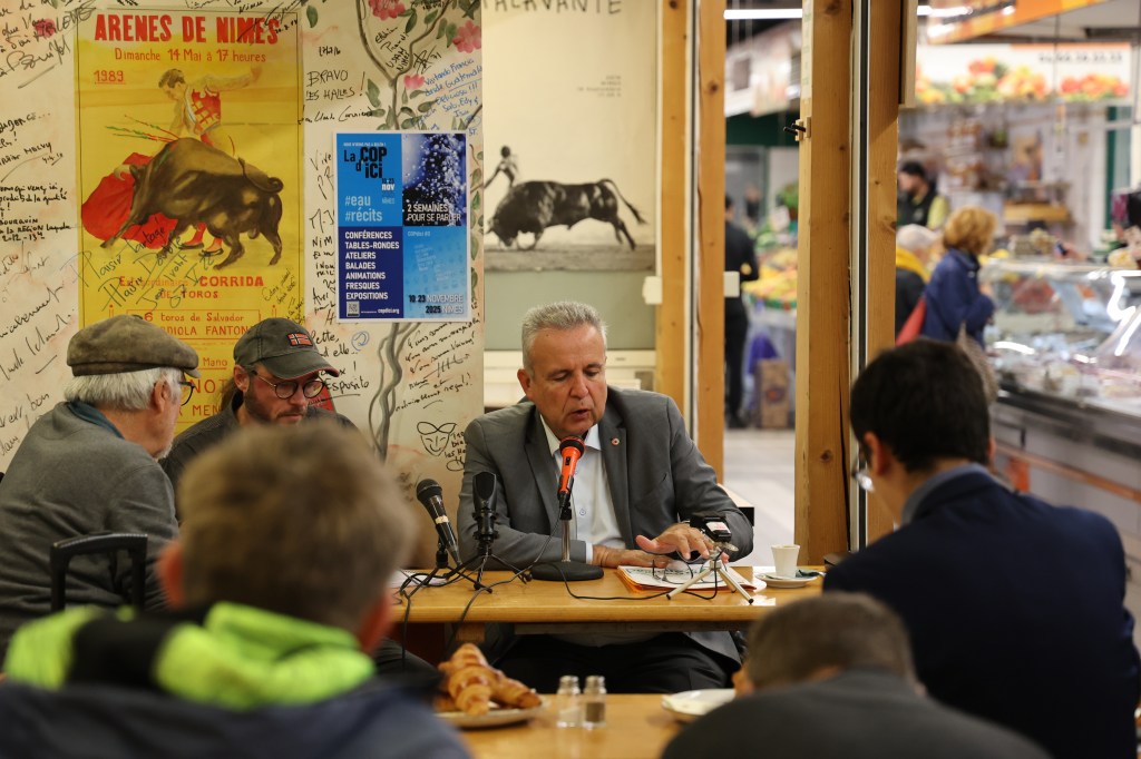 Une vingtaine de participants pour cette conférence de Thierry Agnel, président de l’Établissement Public Territorial de Bassin du Vistre-Vistrenque qui s’est déroulée à Pablo Neruda !