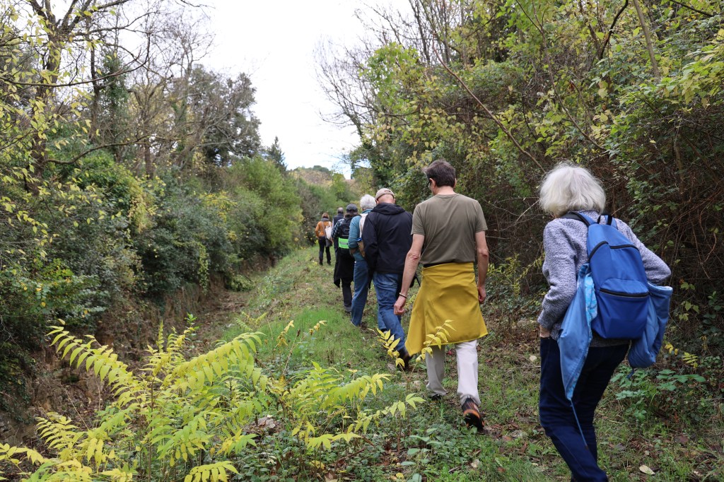 Partis à 20 de la route de Sauve où nous a déposés le bus 14, nous avons rejoint l’amont du Cadereau de Camplanier, qui se situe en dessous du terrain de Golf. Nous avons suivi ses méandres jusqu’au centre ville où nous avons partagé une boisson chaude. Merci à Claire pour ses éléments de botanique, et merci à Nadine pour ses contes racontés dans la grotte des fées !