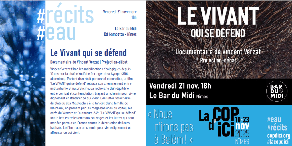 Projection du film « Le Vivant qui se défend » le 21 novembre