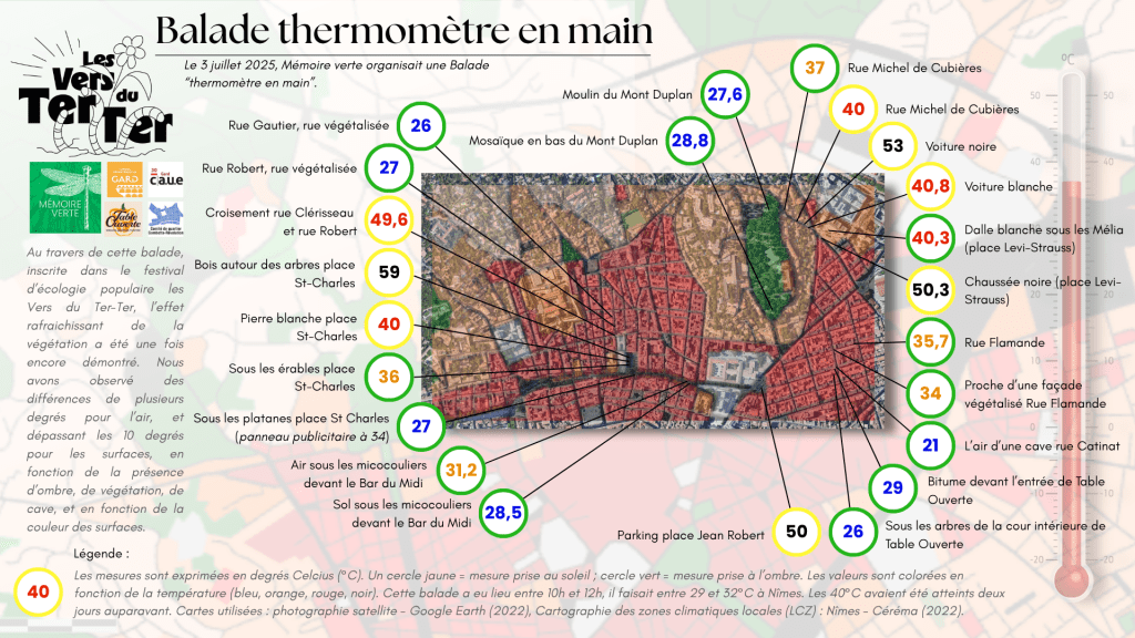 Infographie qui souligne l’importance de la végétation urbaine : relevé de températures