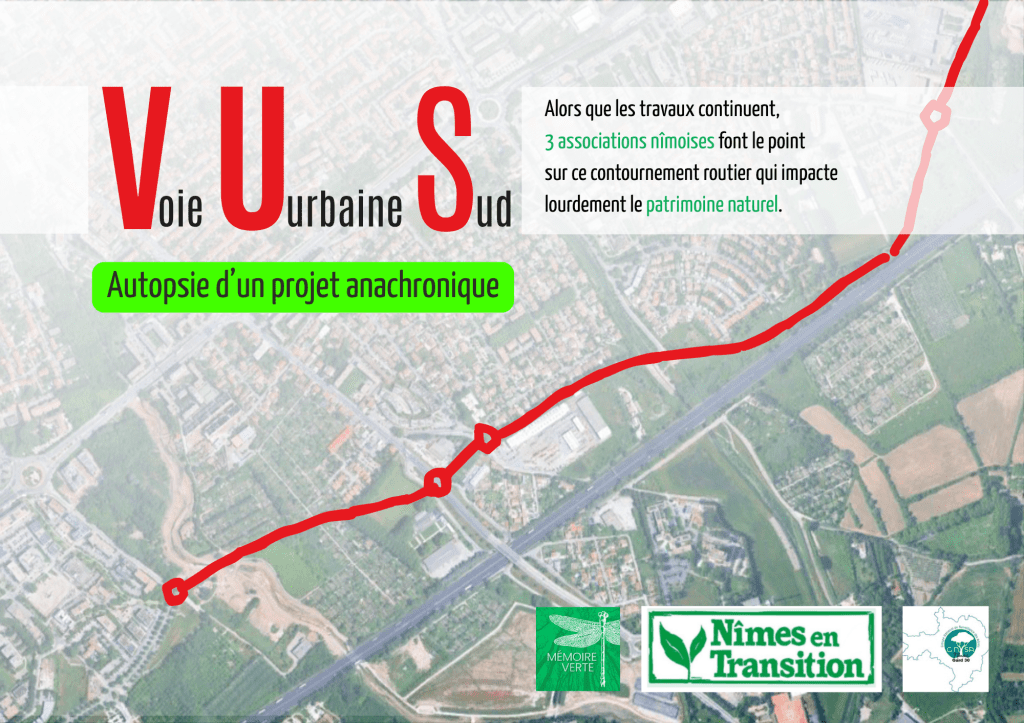 Au sud de Nîmes, le chantier de la Voie Urbaine Sud (VUS) avance à grands pas à quelques mois des élections. 70 peupliers avaient été abattus en septembre, de nombreux autres arbres étaient déjà tombés dans le cadre des travaux du Vistre et des pépinières Pichon.